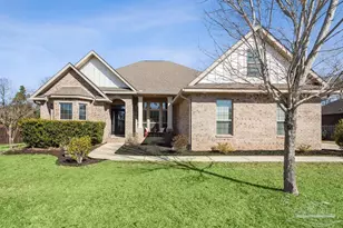 STUNNING GUNITE POOL HOME IN HIGHLY DESIRABLE ASHLEY PLANTATION Located just minutes from town and zoned for Wallace Lake & Pace schools, this move-in ready Emma floorplan delivers the WOW factor-with a bonus room over the garage-all on a fully fenced ½-acre lot with a gorgeous backyard built for entertaining. Inside, soaring ceilings, crown molding, and a wall of tall windows create an immediate sense of space and light. The foyer is flanked by a formal dining room and a front flex room-perfect for a home office or guest space. Tile flows through the main living areas, with LVP in all bedrooms for comfort and durability. The heart of the home features a custom built-in electric fireplace with shiplap surround, open kitchen, and breakfast nook with custom bench seating, all overlooking the backyard. The kitchen and living spaces open seamlessly to a covered back porch and extended deck, extending your living outdoors. The Saltwater, free-form gunite pool includes a tanning ledge, making this backyard a true showstopper. Add in full front and back irrigation, gutters, and an electric-only home-this property checks every box. The primary suite is privately tucked away and offers a tile walk-in shower, soaker tub, double vanities, and a large walk-in closet with custom built-ins. Upstairs, the bonus room with closet provides the perfect flex space for a media room, playroom, or guest retreat. Ashley Plantation is one of Pace's most sought-after neighborhoods-quiet, established, and conveniently located. This is luxury, space, and location wrapped into one exceptional home.