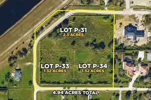 OWNER FINANCING AVAILABLE. Extremely rare opportunity to own a 4.94-acre compound in this part of Palm Beach County. This beautiful cleared, fenced, and partially-filled assemblage of three lots (improvements valued at over $70,000) is located in one of the most secluded areas of Palm Beach Country Estates. This compound is made up of three separately-deeded parcels: one 2.3-acre lot and two 1.32-acre lots - allowing for three separate single-family homes in addition to multiple accessory dwellings. The C-18 canal is just steps away. Owner will consider selling the individual parcels separately. Palm Beach Country Estates has municipal water available for hookup, no HOA restrictions, and is located just down the street from Abacoa and Alton Town Center. Very few vacant lots left in this coveted subdivision and none this size!