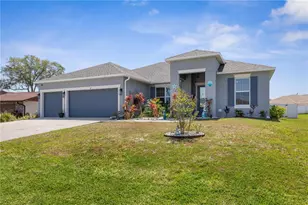 Welcome to this beautifully designed 4-bedroom, 3-bathroom home built in 2022 with a dedicated office/den, a spacious 3-car garage, and an open concept floor plan that effortlessly combines comfort and style. From the moment you step inside, you'll notice the thoughtful upgrades and inviting atmosphere throughout. The heart of the home is a stunning kitchen featuring quartz countertops, stainless steel appliances including a cooktop and built-in WiFi-enabled oven, elegant 42" shaker cabinets, a decorative backsplash, and a large cabinet-front walk-in pantry. The kitchen flows seamlessly into the dining area and expansive great room, where triple sliding glass doors lead out to a covered porch and open patio-perfect for entertaining or enjoying a quiet evening outdoors. Wood-look tile flooring runs throughout the main living spaces, while plush carpet adds warmth and comfort to each bedroom. The primary suite is a true retreat, complete with an oversized window that overlooks the expansive fenced backyard. Its en-suite bathroom offers a luxurious double vanity, a fully tiled separate tub and shower, and a walk-in closet with custom shelving. One of the home's most convenient features is the spacious laundry room with cabinets and a utility sink, which can be accessed from both a private hall off the garage and directly from the primary suite. Additional touches like shiplap accent walls, an electric fireplace, tall ceilings with three trays, and beautifully tiled bathrooms add to the home's charm and character. One of the guest bedrooms includes its own en-suite, offering extra privacy and comfort for visitors. Outside, the oversized backyard is enclosed with white vinyl fencing and includes a custom-built swing set, making it an ideal space for children or grandchildren to play. With hurricane shutters, garage shelving for extra storage, insulated garage doors, walk in attic, and quality finishes throughout, this home is as functional as it is beautiful. Make sure to check out the virtual tour which features a walk through video. Don't miss the chance to make this exceptional property your new home. It's a perfect blend of modern living, thoughtful design, and everyday comfort.