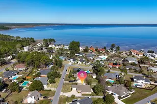 Step into timeless elegance through a stately entryway adorned with leaded glass windows and a beautifully crafted front door, setting the tone for the refined comfort found throughout the home. The expansive great room offers the perfect gathering space for family and friends, where soaring ten-foot ceilings Main area creates a sense of openness and light, and a charming wood-burning fireplace adds a touch of coziness for memorable evenings together. The gourmet kitchen is thoughtfully designed for both culinary creativity and seamless entertaining, featuring durable granite countertops, a stylish and easy-to-maintain backsplash, and a complete suite of appliances--including a deluxe washer and dryer. It's a space where everyday moments and special occasions are equally at home. With four generously sized bedrooms, privacy and comfort are prioritized for every member of the household. Three full bathrooms, a convenient Jack and Jill layout, offer both function and style. Ten-foot ceilings Great room, Kitchen, Dining room also elegant tray-vaulted ceilings add architectural distinction, while ceiling fans throughout ensure year-round comfort and energy efficiency. Wood blinds offer timeless appeal and practical shade. Crafted entirely in brick for enduring curb appeal and lasting quality, the home also features an oversized garage complete with a built-in workbench, pegboard, overhead storage, and automatic opener--ideal for hobbies or weekend projects. The outdoor shower adds a practical touch, especially with the future potential for a pool. A spacious, heated and cooled four-season porch offers year-round enjoyment, while the Large fenced backyard has a gorgeous Sweet Bay Magnolia Tree and dedicated RV pad with power hookups provide flexibility for family fun, travel, and more. Water heater 2021, HVAC 2016 Annual Florida Pest on home. Quiet neighborhood, no HOA, close to West Bay and beaches, in Flood Zone ''X''. This exceptional property blends classic style with modern comfort--designed not just for luxury, but for living well.
