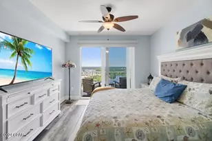 Imagine waking up in paradise every day! This is a 3 bedroom (2-full plus an enclosed bunk room),2 full bath condo which directly overlooks the 10th floor pool plus has your amazing Gulf of Mexico views too! (across the street) and then your direct Lake & Boardwalk views from your private covered balcony. This owners suite has been a non-rental unit. (but could easily be converted to earn rental income of $40-$48,000 yr.) The owners have spared no expense on upgrades to flooring, lighting, electric shades, stainless appliances and enclosing the bunk room with a stylish double sliding barn door system for privacy. This unit comes fully furnished with premium leather living room furniture and beautiful bar-stools, king size split bedrooms and a fabulous fully equipped gourmet kitchen. There is a huge island to gather around and the extra long 29' x 8' balcony can be accessed from the living room or your master bedroom retreat! Living and playing at Laketown Wharf is a lot of fun too! Enjoy games at the putting green, daily pickleball action, enjoy 5 different pools, a 2-story gym, many restaurants, bars and retail shopping venues. This February 2025 a new entertainment venue opens in the Laketown Wharf Convention Center called the 810 and it will have bowling, video games, food and big screens to watch those sporting games on! Just a destination for family entertainment in itself. So schedule your appointment to see this amazing condo and know that its priced to sell!