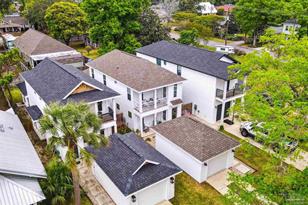 Nestled in the heart of Pensacola's most sought-after neighborhood, East Hill, lies a move-in ready, nearly new construction property that perfectly blends classic Southern style with modern sophistication. This exquisite 3-bedroom with an additional spacious bonus room, 2.5-bathroom home features 1,995 square feet of superior construction and impeccable finishes. From the moment you arrive, you'll be captivated by the beautiful detached garage and courtyard that lead to the 9-foot front door. Inside, a grand foyer welcomes you and opens up to an open concept great room that is perfect for entertaining. The first floor features a spacious living, dining, and kitchen area that is lined with custom wood cabinets, quartz countertops, and luxury plank vinyl flooring. The kitchen boasts a full gas appliance package, including a convection oven, French-Door refrigerator, range hood, pasta arm, low-profile microwave, and a convenient in-kitchen pantry. The large master suite, located on the first floor, offers a tranquil retreat with a tray ceiling, modern and unique bathroom finishes, and a spacious walk-in closet. Upstairs, you'll find two spare bedrooms, a home office, and a full bathroom with custom-tiled shower and lighting that perfectly matches the downstairs kitchen and master bath. LED recessed lights and large windows throughout the home provide an abundance of natural light, while the custom landscaping is easy to maintain with the included irrigation system. This stunning property is conveniently located in the heart of East Hill and within short walking distance to Publix, several parks, and shops/restaurants. This property is a must-see and unlike anything currently listed in East Hill. With its perfect combination of classic Southern charm and modern elegance, it's the ultimate dream home for anyone seeking a luxurious and comfortable lifestyle.
