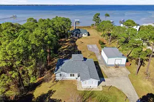 Experience exceptional waterfront living on Perdido Bay with this beautifully appointed coastal retreat designed to maximize views, comfort, & the boating lifestyle. The property offers 2 homes & a 30X40 warehouse/workshop with electricity and water. Along the water's edge, a substantial 120-foot riprap rock wall stabilizes the shoreline, while the property is further secured by a 327-foot, four-foot-high retaining wall constructed as a seawall that surrounds the property on three sides. This thoughtfully engineered system provides added peace of mind while preserving the integrity & beauty of the waterfront setting. A pier with boat lift, boathouse & fish cleaning station with electric & water make this property ideal for avid boaters & anglers. Inside the waterfront home, a spacious open-concept living, dining, & kitchen area is perfectly positioned to capture sweeping bay views from every angle. The kitchen showcases granite countertops, stainless steel appliances, & custom solid maple cabinetry, thoughtfully designed for both functionality & entertaining. The living room features custom built-in cabinetry & a propane fireplace, creating a warm yet refined gathering space overlooking Perdido Bay. The primary suite is a true waterfront sanctuary with a trey ceiling, recessed lighting, stunning bay views, & private access to the porch. The ensuite bath is elegantly finished with travertine countertops, a jetted tub, custom ceramic sinks with dual vanities, & a walk-in shower with bench & dual showerheads. Enjoy coastal breezes from the covered L-shaped back porch and the 14' x 14' screened porch. Major updates include a new water heater (2025), HVAC (2020), & roof (2021), offering peace of mind for years to come. This Perdido Bay waterfront property seamlessly blends luxury, durability, and an unbeatable boating lifestyle. If 14918 home is sold separately, it will be $500,000 and an access easement will be granted.