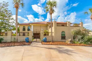 OPEN HOUSE SATURDAY (3/7/2026) 12:00-3:00 PM! Welcome to this large 5-bedroom, 5-bath Mediterranean-style estate with a private guest suite, ideally positioned on the Perdido Bay Golf Course, a property defined by exceptional craftsmanship, architectural detail, and a level of construction quality that is increasingly difficult to replicate today. From the very first impression, the home stands apart with a stunning clay tile roof, heavy-duty solid wood doors, hand-carved wood doorways, and elegant wrought-iron accents throughout. The residence was built using imported stone, brick, and specialty materials, creating a timeless, substantial feel and remarkable durability. The home has been significantly improved with over $40,000 in new high-impact windows, offering both performance and peace of mind, along with a new upstairs A/C unit, the convenience of both a tankless and new tank water heater, and a brand new refrigerator and dishwasher. A private courtyard with a striking fountain creates a welcoming entry into expansive and flexible living spaces. Inside, the layout features a dedicated library, a private sauna, a light-filled greenhouse, and a dream office suite that has been fully remodeled to support work-from-home or professional use. The private guest suite has also been completely remodeled and now includes a brand-new Murphy bed, providing a comfortable and versatile retreat for visitors. Upstairs, each bedroom opens to its own private balcony, offering individual outdoor spaces with elevated views overlooking the golf course. With its fortress-like construction, hand-crafted architectural elements, imported materials, and thoughtful modern updates, this property offers an exceptional combination of strength, character, and functionality in one of the area's most distinctive golf course settings.