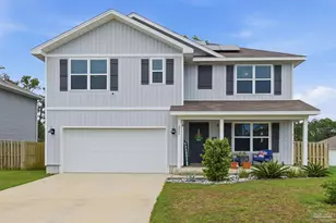 Welcome to Bridleswood! This stunning two-story Hayden floor plan is situated on a desirable corner lot and offers the perfect blend of space and functionality, featuring 5 bedrooms, 3 full bathrooms, a flex room, and an additional upstairs living area-ideal for today's lifestyle. The first floor showcases an open-concept design with a spacious great room that flows seamlessly into the dining area and kitchen. The kitchen is equipped with a large island, smooth-top range, built-in microwave, dishwasher, and a generous pantry-perfect for both everyday living and entertaining. A convenient first-floor bedroom and full bath provide flexibility for guests or a home office. Upstairs, the primary suite offers a relaxing retreat with ample space and natural light, along with additional bedrooms and a second living area for added comfort. This home also includes hurricane protection, smart home technology with video doorbell, keyless entry, and ADT security system. The low-maintenance exterior and two-car garage add to its appeal, while solar panels provide added energy efficiency. Ideally located, Bridleswood offers easy access to shopping, restaurants, medical facilities, Navy Federal Credit Union, NAS Pensacola, and the Publix shopping center at Nine Mile Road. Outdoor enthusiasts will appreciate nearby Ruby's Fish Camp boat launch and other recreational opportunities. This home truly checks all the boxes-don't miss your opportunity to make it yours!