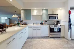 You will love the incredible lake views from your living room and screened balcony. Gorgeous remodeled kitchen is open to the living and dining areas. Large primary suite has an updated bathroom and walk in closet. Bamboo floors in living and bedrooms. Large stacker washer and dryer in the unit. Hurricane impact windows in second bedroom. Storm shutters on balcony. Best of all, this unit comes furnished and ready to move into. The kitchen even has plates and silverware ready to go. Bar in kitchen, armoire in the second bedroom, and dining room chairs do not convey. Association requires minimum 10% down and 700 minimum credit score.