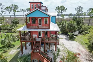 Enjoy breathtaking 180-degree sunrise and sunset views over Indian Pass Lagoon from this custom-built 3-bedroom, 3-bath lagoon-front coastal home. Set on over three-quarters of an acre, the property offers exceptional privacy, expansive water frontage, and unobstructed views that stretch across the lagoon in all directions. Designed for comfortable coastal living, the interior features cinnamon wood flooring, hurricane-impact rated windows (several recently replaced), and Bahama shutters surrounding the master suite. The kitchen is equipped with a gas range and oven, while a central vacuum system adds everyday convenience. Recent upgrades include a Legacy Lift (2020), new upstairs HVAC (2022), new downstairs HVAC (2024), fresh exterior paint, and a dedicated irrigation well. An outdoor shower completes the ideal beach lifestyle. A two-story 2020 storage shed (built in 2015) provides excellent potential for conversion into guest quarters or flexible living space. Never used as a rental, this owner-occupied home has been meticulously maintained and is truly move-in ready. Ideally located just minutes from Indian Pass and Cape San Blas, you'll enjoy easy access to some of the area's most pristine beaches, boating, fishing, and the famous Indian Pass Raw Bar, while still being only 15 minutes from Apalachicola and Port St. Joe. From the decks, take in spectacular sunrises over the lagoon and sunsets that light up the evening sky-views that few properties can offer. Perfect as a primary residence, private coastal retreat, or future vacation rental, this lagoon-front home delivers unmatched views, location, and lifestyle. Schedule your private showing today.