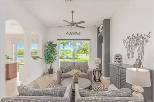 LAKE VIEW CBS HOME - Nestled in the gated community of Heritage Oaks, this 2006-built CBS home sits on a cul-de-sac w/ serene lake views. Offering 3-beds, 2-baths, + den, this home boasts an open & airy layout w/ high ceilings & elegant 20" tile flooring in the main living areas. The kitchen features white shaker cabinets, granite countertops, SS appliances and a built-in buffet for extra storage/prep space. The spacious master suite includes two large walk-in closets, dual vanities, a separate shower, & a soaking tub. Step outside to the covered, screened lanai, where you can unwind while enjoying the tranquil lake views. Additional features include full accordion storm shutters for peace of mind during hurricane season. HOA fees cover lawn, cable, high-speed internet & pest control. Residents also enjoy access to the community clubhouse, pool, & gym. Conveniently located near shopping, dining, & w/ easy access to I-95, this home is the perfect blend of comfort, style and convenience.