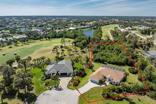 A rare and exceptional opportunity to own nearly an acre in the Long Meadow Section of Rotonda West! This cul-de-sac property offers partial golf course views and includes a unique additional lot bordering the Long Marsh Golf Course. The wooded space enhances privacy and creates a serene setting with uninterrupted views, but also provides the ability to transform it to additional outdoor entertaining space if desired. Step inside this bright and airy three-bedroom, two-bath home, where soaring ceilings and quadruple pocketing sliders welcome you with stunning pool views from the moment you enter. Tile flooring in the main living areas and bathrooms ensures easy maintenance, while the kitchen offers ample white cabinetry, plant shelves, a breakfast bar, and a convenient pocket door leading to the formal dining room. A large window in the breakfast nook overlooks the backyard, and a French door provides direct access to the lanai. The spacious primary suite features dual walk-in closets, a tray ceiling, French doors to the pool, and an expansive ensuite bath with dual vanities, a garden tub, and a walk-in shower. The split-bedroom design ensures privacy, with two additional bedrooms offering reach-in closets and a shared guest bath with a tub-shower combo. A large interior laundry room has a built-in cabinet with utility sink, countertop space and shelving. The outdoor living space includes an oversized pool with a western exposure that invites you to unwind and enjoy breathtaking sunsets with a glass of wine. Additional highlights include a 2023 roof, new pool cage screening (2023), a 2022 water heater, a 2024 garage door opener, and a private well-fed irrigation system. As another added bonus, the Seller's flood insurance policy is transferable! Best of all, this home is being sold turnkey furnished, just pack your bags and move in! Located in deed-restricted Rotonda West, this community offers five golf courses, a clubhouse, tennis, hiking, clubs, and 26 miles of scenic waterways. A short drive takes you to pristine beaches, boating in Lemon Bay and Boca Grande, world-class fishing, shopping, local restaurants, tiki bars, medical facilities and so much more. Don't miss this rare blend of space, privacy, and resort-style living - schedule your private showing today!