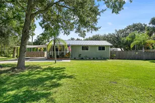 Unique property, set on nearly ¾ of an acre, features 3-bed, 2-bath main residence complemented by a detached guest house. Guest accommodations are ideal for visitors w/ 1 bedroom, 1 bathroom, a convenient kitchenette, & laundry room. New metal roof 2022, A/C unit in 2021, and H/W heater in 2020. Fully fenced for privacy, with an added 8-foot fence along the rear of the property. Substantial 22-foot electric gate, perfect for parking RVs, boats, or other large vehicles.20'x37' canvas-covered storage area for your boat. Custom woodwork, wood-burning fireplace, and a serene screened-in porch.