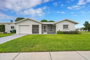 SFH. Updated 2 bedrooms, 2 full bathrooms, 1 car garage corner lot home across from clubhouse and pool. Updates include A/C, kitchen cabinets, granite counter tops, bathroom vanities in both bathrooms, toilets, light fixtures and hardware throughout the house. Tile floors throughout home. Large family room for extra living area. Screened front porch.