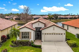 POND VIEWS IN PARADISE! Welcome to the premier gated, 55+ lifestyle community of Venetian Falls in picturesque Venice, FL where refined design and tranquil waterfront living converge. This impeccably renovated single-family home offers 3 bedrooms, 2 full baths, a 2-car garage, and 2,069 square feet of refined living space, all perfectly positioned to capture breathtaking LONG WATER VIEWS and unforgettable sunsets. A screened front entry with heavy-duty storm door sets a welcoming tone, inviting natural light into the home while maintaining comfort and peace of mind. Inside, the highly coveted Milan floorplan unfolds with two expansive and flexible living areas, thoughtfully designed for entertaining or relaxed everyday living. CROWN MOLDING, volume ceilings, and abundant light create an airy, upscale ambiance throughout the main living spaces. At the heart of the home, the designer kitchen has been masterfully remodeled to reflect both beauty and function. CAMBRIA QUARTZ COUNTERTOPS, a SHIPLAP-WRAPPED CENTER ISLAND, light and bright cabinetry, tile backsplash, upgraded appliance package with drop-in range, and a generous walk-in pantry combine to create a culinary space that is as stylish as it is practical. Custom shiplap detailing continues into the sunlit breakfast nook, where BAY WINDOWS frame serene water views. High-end DESIGNER LIGHT FIXTURES and PLANTATION SHUTTERS throughout further elevate the home's timeless elegance and represent a significant investment in quality. The formal dining room exudes character with custom built-in shelving and an electric FIREPLACE INSERT, offering a refined setting for intimate gatherings. The luxurious primary suite serves as a private sanctuary, complete with a tray ceiling, newer carpeting, dual closets including a spacious walk-in, and direct access to the lanai through sliding glass doors. The REMODELED PRIMARY BATHROOM is beautifully appointed with a shiplap accent wall, upgraded double vanity with quartz counters, dual framed mirrors and a large walk-in shower, creating a spa-inspired retreat. Designed with privacy in mind, the split-bedroom layout ensures comfort for guests. Bedroom 3 features a built in MURPHY BED AND CLOSET, allowing effortless transformation into a den or home office. Outdoor living is nothing short of exceptional. The EXTENDED SCREENED LANAI offers sweeping pond views and seamless indoor-outdoor flow through three sets of sliding glass doors. DUAL RETRACTABLE AWNINGS provide shade and comfort, while custom landscaping beyond the lanai enhances the lush Florida setting. With coveted Southwest rear exposure, the home delivers spectacular sunsets each evening - an ever-changing masterpiece over the water. Additional highlights include FULL HURRICANE SHUTTERS, tile roof, 'Flood Zone X' designation for added peace of mind, overhead garage storage, and a well-appointed laundry room with added cabinetry and a utility sink for convenience and functionality. Residents of Venetian Falls enjoy a resort-style experience with a HEATED POOL, resistance pool, spa, state-of-the-art fitness center, bocce ball courts, putting green, card room, and a full-time activities director curating a vibrant social calendar - all complemented by reasonable HOA fees and no CDD fee! Ideally situated just minutes from Wellen Park and Venice Island, you are moments from pristine Gulf beaches, fine dining, boutique shopping, and cultural attractions. This is elevated Florida living at its finest!