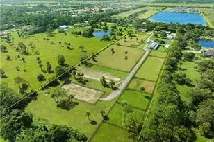 8.63-acre equestrian property in Vero Beach featuring a pond, mature oaks, fully fenced grounds, three barns with over 9,000 sq ft of covered space, 16 stalls, 2 feed and tack rooms, and bathroom facilities, a dressage arena, schooling arena, and multiple turn-out paddocks. The 3-bedroom, 2-bath CBS ranch home offers a split layout with walk-in closets, open kitchen with stainless appliances, and vinyl flooring throughout. The house has a large extra space that can be converted into a mother in law or helper's apartment. Paver patio and open porch. The 30x15 heated pool rounds out the outdoor space. Newer roof, AC, and water heater. County water and paved road access.