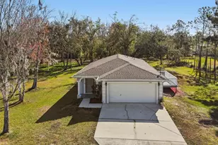 Rare opportunity to own over one acre of land in a hidden gem location in Wesley Chapel, offering the perfect balance of peaceful country living and everyday convenience. This move-in ready 3-bedroom, 2-bath home is situated on zoned AR land with NO HOA and NO CDD, giving you the freedom, space, and flexibility you have been searching for. Built in 2006 and thoughtfully updated, this well-maintained home features a bright open-concept floor plan with abundant natural light, creating a warm and inviting atmosphere for both daily living and entertaining. The spacious living, dining, and kitchen areas flow seamlessly and overlook the surrounding property, allowing you to enjoy views of your land from inside the home. Recent MAJOR improvements include a roof (2020), gutters (2021), laminate flooring throughout (2020), stainless steel appliances (2020), brand new water filtration system (2026), AC system (2017), and septic system inspected and serviced in 2024, providing peace of mind for years to come. The owner's suite offers comfort and privacy with its own full bath, while two additional bedrooms and a second full bathroom provide ample space for family, guests, or a home office. Each bedroom is generously sized and equipped with ceiling fans. A two-car garage offers additional storage, parking, or the perfect setup for a workshop. Step outside and explore the possibilities-bring your RVs, boats, trailers, or recreational toys, add a pool, create a fire pit or garden, or simply enjoy the privacy and tranquility of your own land. Mature trees and lush greenery surround the property, creating a serene setting and a natural haven for local wildlife. Despite the peaceful setting, this home is minutes from I-75, SR-54, Wiregrass Mall, The Grove, top-rated schools, restaurants, healthcare facilities including AdventHealth and BayCare, and all that Wesley Chapel has to offer. You truly get the best of both worlds-space and privacy without sacrificing location. Properties like this are becoming increasingly rare in Wesley Chapel and here is your opportunity to own one. Schedule your private showing today and discover the lifestyle and freedom that come with owning your own land in coveted Wesley Chapel.