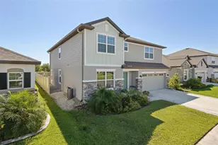 **This home has nearly 90k worth of builder and owner upgrades!** Welcome to this impressive, nearly new home built less than 3 years ago, featuring the beautiful Maronda Homes Carlisle floor plan. Ideally located just 5 minutes from I-75, this property offers easy access to downtown Tampa and nearby beaches. Nestled within the vibrant Epperson Ranch community of Wesley Chapel, this meticulously maintained two-story home offers over 3,000 square feet of thoughtfully designed living space, featuring 5 bedrooms plus an office/den, 4 full bathrooms, and a powder room. As you arrive, you are greeted by a charming stone-accented front elevation and a welcoming front garden. Inside, the open-concept layout seamlessly blends style and functionality. The spacious living areas showcase upgraded luxury EVP flooring, while crown molding adds a touch of elegance. The versatile den, enclosed with French doors, serves ideally as a home office or a cozy retreat. The private guest suite with a full bathroom offers comfort for visitors or multi-generational living, while a powder room adds convenience. The kitchen is designed for culinary enthusiasts, featuring a large center island, quartz countertops, upgraded 42-inch cabinetry, and a stylish LED lighting. The stainless-steel appliances include a refrigerator, microwave, dishwasher, cooktop, and oven, making meal preparation a delight. A spacious walk-in pantry offers ample storage, and the adjacent dining area flows effortlessly into the living space, ideal for gatherings and everyday living. Upstairs, a spacious double loft area provides versatile living space, while the laundry room, complete with a washer and dryer, adds convenience. The master suite is a tranquil retreat with a tray ceiling, dual vanities, a soaking tub, a walk-in shower, and a generous walk-in closet. An additional Jack and Jill bathroom between two of the bedrooms makes for practical family living. Throughout the house, energy-efficient LED lighting, a whole-house water softener, and a reverse-osmosis drinking water filtration system add comfort and efficiency. Fully fenced backyard is a private oasis, with no back neighbors ensuring a peaceful and secluded atmosphere. The outdoor space is truly an entertainer's dream, featuring an extended, covered, screened lanai, a large paver patio, and a sparkling 12 x 24 ft swimming pool. Families will love the play area equipped with a swing and trampoline. A meticulously crafted organic garden offers a great space to grow vegetables, while practical features such as a French drain system, Gutters and irrigation system keep the landscape well-maintained. Living in Epperson Ranch means experiencing resort-style amenities every day. Residents enjoy access to the iconic Crystal Lagoon - the first residential lagoon in the U.S. - spanning 7.5 acres with swimming, relaxation areas, and various activities. The community also features Eagle Lake Park, a clubhouse available for private events, a dock with a kayak launch, playgrounds, dog parks, and a butterfly garden. The quarterly HOA fee covers high-speed internet with speeds up to 1 Gig and access to over 175 cable TV channels. All kitchen appliances and washer and dryer are included in the price. To ensure added peace of mind, seller will provide a complimentary 1-year home warranty to the buyer at closing. Don't miss the chance to own this exceptional home in a community where every day feels like a vacation!