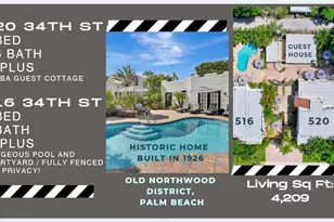 Compound in Old Northwood. Discover this rare 7-bedroom, 7.5-bath compound in the heart of Historic Old Northwood - ideal for large families, yacht crews, or Airbnb investors. 516 & 520 34th Street are being sold together, featuring 3 kitchens, 3 laundries, a workshop, and storage room. Enjoy a resort-style pool area, tropical landscaping, and full privacy fencing. Recent upgrades include new impact windows and doors, new interior paint, newer roof (Nov 2022), updated electric, and newer A/C units. Just minutes from CityPlace, Peanut Island, beaches, #RybovichSuperyachtMarina, and #Maralago. A truly turnkey and elegant property - rare to find and ready to enjoy! The homes are on separate tax parcels, so they could be sold individually. Offered Turn-Key ready!