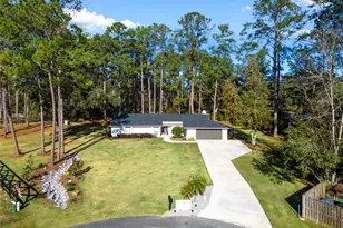 Welcome to this beautifully maintained 3-bedroom, 3-bath home offering 1,910 heated and cooled square feet, perfectly situated in a quiet cul-de-sac in a highly desirable Gainesville, FL location. Set on 1.05 acres surrounded by pine trees, this property provides privacy, space, and endless possibilities for animals, gardening, or simply enjoying the outdoors. The entire yard features fresh sod installed in 2024, creating lush, green grounds ready to enjoy. The home offers peace of mind with extensive recent upgrades, including an architectural shingle roof (2025), HVAC Trane system (2022) and hot water heater (2022), water softener (2024), and a new well tank and pump (2025). A new driveway (2024) leads to the two-car garage, with a private mailbox enhancing the home's secluded feel. A pole barn provides excellent storage or workspace. Outdoor living shines with a covered back patio, perfect for relaxing evenings, entertaining friends and family, or enjoying Florida nights. Inside, the home features fairly new appliances (2023) including washer & dryer, refrigerator, dishwasher, stove, and microwave. With major systems updated and generous indoor and outdoor living space, this move-in-ready property offers comfort, functionality, and incredible opportunity in a peaceful neighborhood setting.