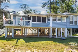 Welcome to your private retreat on beautiful Fish River! This charming 3-bedroom, 2-bath home offers 1,558 square feet of comfortable living space, featuring upgrades throughout. Step inside to find fresh vinyl plank flooring, upgraded plumbing and fixtures, and a recently installed tankless water heater, well pump, and new AC-all designed for worry-free living. Relax in the screened sunroom overlooking Fish River, where you can enjoy peaceful views year-round. The primary bedroom overlooks the water and has a walk-in closet, and a private balcony. The office or spare bedroom opens to a screened sunroom which overlooks the water. The property also features a 30' x 40' metal building with a brand-new loft, multiple roll-up doors, electricity, and a freshly poured driveway with plenty of room for your RV, boat, or additional vehicles. Over 80 feet of newly installed retaining river wall. The property also features two fishing piers where you can launch your kayaks or tie off your boat or jet ski. There is a 50-amp RV service and a new industrial floor coating in the shop. Also, there is new concrete around the shop and a new concrete sidewalk leading to the home. With no HOA restrictions, you'll have the freedom to make this waterfront property your own. Whether it's fishing, kayaking, or simply soaking up the natural beauty, life on Fish River offers the perfect blend of recreation and relaxation. Fish River with an average depth of 4-7ft. Your boat can be parked on the water and a nice public boat ramp is just 3 miles away on Honey Rd. This home combines modern updates with the serenity of riverfront living-ideal as a full-time residence, weekend getaway, or investment opportunity. Don't miss your chance to own a slice of paradise in Silverhill! Buyer to verify all information during due diligence.