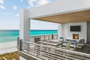 This stunning Camp Creek Lake residence offers private beachfront living at its best. Enjoy the privacy of Camp Creek Lake as you're greeted with a gated entry. A garden courtyard entrance at the residence welcomes you with a flowing fountain. Inside, European folding glass doors fully retract to deliver uninterrupted views from the great room to the beach and the emerald waters of the Gulf of Mexico. Sumptuous bathrooms, acres of marble, and beautiful wood and tile floors draw you from one incredible space to the next. Venetian plaster walls, coffered hardwood ceilings, and three cozy gas fireplaces make this a luxurious yet comfortable beach house for relaxing and entertaining. The sitting room and dining area look out through a wall of glass doors to a covered dining terrace for enjoying fresh sea breezes. Two wet bars with refrigerators, one in the living room and one in the gulf-front den, keep drinks perfectly chilled and ready to serve. The gourmet kitchen showcases the highest quality Sub-Zero & Wolf kitchen appliances along with white quartz counters, a striking geometric tile backsplash, and a large breakfast bar. French doors from the kitchen connect to the pool courtyard with ample space for lounging. A private IPE walkway leads across the dunes to the beach for morning walks with pelicans and playful dolphins. After a peaceful stroll, return for a dip in the private pool, working up an appetite for an early lunch. A private elevator whisks you effortlessly between floors. The first floor boasts one bedroom with a lavish ensuite bathroom and an additional half bath. The second floor is home to the Gulf-front primary suite, accessible through a large sitting room with a coffee bar and kitchenette equipped with an icemaker, refrigerator, microwave, and sink. To complete the primary wing, the spa-like bathroom has a multi-head shower and freestanding oval tub. Step out onto the generous covered porch with a fireplace and enjoy spectacular gulf views from sunrise to sunset. Two additional guest bedrooms and a large bunk room share three more bathrooms, including two ensuites. The bunk room sleeps 4 with 3 custom built-in beds and a hide-away trundle bed, each having its own light and charging station. A living room space on this level is perfect for children and guests to gather. Two thoughtfully located laundry areas - one on the second floor and one in the garage - take care of beach towels and laundry. Built to the highest standards using concrete construction, concrete roof tiles, and hurricane-resistant windows and doors, this home is managed by a smart Control4 home operating system which automatically takes care of lighting, audio, video, climate control, and security. Additional highlights include a whole home built-in vacuum, four HVAC units, and two tankless water heaters. This residence showcases outstanding craftsmanship and attention to detail. The two-car garage can store vehicles, bicycles, and beach toys. The residence features 3 additional parking spaces. It comes with 90 feet of private beachfront, with exquisite views enjoyed from the expansive second-floor balcony. The condominium has no monthly association dues. Located on 30A's coveted east end, this provides the finest in gulf-front coastal living. It combines a premier location with privacy and uncrowded beaches yet is conveniently close to 30A's bike path, golf courses, dining, and shopping, including a new Publix, and amenities at nearby Alys Beach, Rosemary Beach, and Seaside.