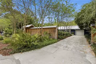 Tucked away on a quiet, oak-canopied dead-end street in the beloved Florida Park neighborhood, this one-of-a-kind mid-century home blends architectural history, intentional design, and modern sustainability into a truly rare offering. Originally built in 1949, the home has been thoughtfully reimagined over time with architect-designed additions that honor its original character while elevating it for today's lifestyle. Inside, natural light pours through expansive windows into open living spaces with soaring 10-foot ceilings, where garden views, birdsong, and soft shifting light become part of everyday living. Every detail reflects a deep commitment to quality and wellness, from low- and no-VOC finishes to energy-efficient windows, doors, appliances, and smart home features that enhance comfort and efficiency. Major upgrades include a high-efficiency, multi-zone HVAC system with up to four zones, variable speed air supply, and smart controls, supported by all-new ductwork. Electrical systems have been fully modernized with underground service, upgraded load center, and extensive rewiring. Plumbing has been fully re-piped. A metal reflective roof adds durability and energy efficiency, paired with oversized gutters and downspouts for stormwater management. Roof orientation maximizes southern exposure for future solar potential. Designed for peace and privacy, the home features enhanced sound insulation between living and sleeping spaces, including double 5/8" drywall, Rockwool insulation or masonry block construction, and solid-core interior doors, creating exceptional quiet and comfort throughout. The flexible layout offers multiple private retreats, including a potential income-producing or in-law suite with separate entrance, porch, gated access, and dedicated parking. A spacious closet near utility lines offers future kitchenette potential for a fully self-contained unit. A detached writer's cottage in the garden provides an inspiring studio or home office with peaceful views. Professionally designed, easy-care gardens surround the home, featuring drought-tolerant plantings, smart hydro-zoned irrigation, and a small zoysia turf area for play or relaxation. At the heart of the landscape, a serene lily pond with waterfall filters stormwater and creates a soothing focal point, bringing light and reflection into the home's living spaces. Privacy and connection to nature were key priorities. A Japanese-inspired front fence and gate enhance curb appeal while screening the home, and a cantilevered driveway gate keeps vehicles discreetly out of view. Indoors and outdoors blend seamlessly, with framed garden vistas and a constant sense of light, air, and tranquility. Located in highly sought-after Florida Park, known for its oak canopy, quiet streets, and strong community feel, the home sits on a true dead-end street with minimal traffic and abundant wildlife. Just a short walk or ride (1.2miles) to the University of Florida, it offers rare convenience while feeling worlds away. This is more than a home, it is a carefully curated sanctuary designed for beauty, flexibility, and enduring livability.
