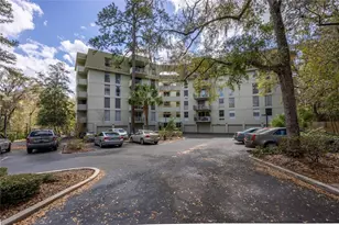 Under contract-accepting backup offers. Perched amongst the trees is a magical space offering timeless modern design and a harmonious connection to nature. Gaineswood is one of Gainesville's best-kept secrets. Built in 1972 and designed by Miami Architects Howard Melton and Tom Russel, the Mid-Century Modern Towers each have 6 floors, two elevators per tower, 6 park-like acres and one of the most gorgeous settings for a clubhouse in Gainesville. Full-time on-site management offers carefree living with complete exterior maintenance, building insurance, grounds maintenance, water and sewer and twice-a-week trash service. The amenities include a playground, community pool, tennis court and large clubhouse. The clubhouse has a library/billiards room, meeting room, dining area with a kitchen, fitness room, lockers, sauna and wet room. There are also two spaces reserved for residents to use as an art studio and storage. This 4-bedroom, two-bathroom home is located on the second floor and has two balconies overlooking the gardens and the nearby Hogtown Creek and Glen Springs tributary. From the foyer you enter the bright and open floor plan. The home has parquet oak flooring in the Great Room and open dining area. Off the Great Room is the first balcony with nearly 100 feet of outdoor space. To the right of the foyer and off the dining area is the updated kitchen with white cabinets and terrazzo-style quartz countertops. The kitchen has ample storage, an updated tile backsplash and updated lighting. Off the Great Room is a flex room that was the 4th bedroom, but is currently used as a study. Down the main hall is the former half-bathroom that has been converted into a laundry room with a washer and dryer. Next to the laundry is the guest bathroom with a large double-sink vanity, ample storage and a private bathroom and tub/shower. There are two guest bedrooms. At the end of the hall is the large Primary Suite. This room has a second, private balcony. There is a large, double-sink vanity, walk-in closet and a separate walk-in shower and water closet. The home has been well maintained and updates include a new water heater (2018), new HVAC (2022), and new windows throughout. Milestone and Capital Reserve Studies are complete and available for review. Gaineswood is located just two miles north of the University of Florida, 15 minutes to downtown Gainesville and central to area shops and restaurants. Walk next door to the Alfred A. Ring park with hiking trails along the creek. Gaineswood is gated and offers open parking or optional garages for purchase separately. This truly is a beautiful setting. Come for the architecture and stay for the peace and quiet.