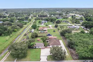 This unique 2 bedroom, 2 bathroom home sits on 1.47 acres in the acreage and comes with a massive 2,000 square foot detatched structure that is air conditioned and packed with all you need for entertainment to include things like, a movie theater, fish tank, a full bar, plus plenty of space to make it your home office or hangout spot. Main home is 809 sq. feet complete with new appliances, partial impact glass, AC is 2020. Outside you'll find a barn, partially fenced, and a pad for your RV or boat.