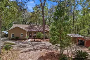 Welcome to this charming 3-bedroom, 2-bath home located in the desirable Bellamy Road Estates, situated off one of the most beautiful roads in the area. From the moment you arrive, the adorable front porch invites you to slow down and enjoy the peaceful surroundings. Step inside to find a bright and welcoming interior filled with natural light, high ceilings, and a thoughtfully designed layout. The home features a formal dining area and spacious living room, creating an ideal setting for both everyday living and entertaining. The massive kitchen is truly the heart of the home, offering abundant storage, a large island with bar stool seating, and a cozy eat-in area. It opens seamlessly to the main living room where a warm fireplace creates the perfect gathering space. French doors lead out to a spacious back porch overlooking the serene backyard-an ideal place to relax and enjoy the peaceful view of mature trees and nature. The primary suite is a private retreat featuring a beautiful bathroom with two large vanities offering ample storage and a spacious shower with dual shower heads. All bedrooms are generously sized, providing comfort and flexibility. The laundry room includes built-in shelving for added organization. Throughout the home, you'll find durable luxury vinyl plank flooring with no carpet, making maintenance easy. Outside, the property is fully fenced and full of charm. Two sheds provide plenty of room for storage, hobbies, or outdoor toys, and there is even a chicken coop ready for your homesteading dreams. Enjoy fresh fruit right from your yard with producing grapefruit, lemon, and orange trees. This peaceful property offers privacy and mature landscaping while still being incredibly convenient. Located just seconds from I-75 and minutes to downtown High Springs and Alachua, local campgrounds, the Santa Fe River, and the area's famous natural springs. Gainesville and Lake City are also just a short drive away, giving you easy access to shopping, dining, and medical facilities.