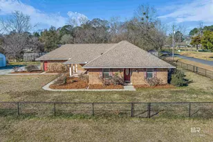 Location! Location! 4-bedroom, 3-bath all-brick home ideally located in the heart of Silverhill. Situated on a large, level corner lot, this property offers exceptional flexibility with NO HOA and a fully FENCED yard-including the front-perfect for storing boats, RVs, or other recreational toys. A standout feature is the 25' x 35' OUTBUILDING/WORKSHOP equipped with power and two roll-up doors, allowing easy pull-through access for vehicles or equipment. Recent upgrades include a NEW FORTIFIED ROOF installed Summer 2025, providing peace of mind and potential insurance savings. The home is equipped with a whole-home gas GENERATOR, TANKLESS HOT WATER heater, and beautiful wood and tile flooring throughout. The oversized kitchen offers abundant space and easily accommodates a center island, making it ideal for entertaining or everyday living. A stainless steel REFRIGERATOR will remain with the home. An additional flex space provides versatility and can be used as a home OFFICE, craft room, playroom, or hobby space, adding even more functionality to the home's convenient floor plan. The property is currently on well water, with the option for the buyer to connect to Silverhill city water. Conveniently located just 0.3 miles from Silverhill City Hall and the Police Station, this home combines small-town charm with everyday accessibility. Sellers have loved the generous lot size, flexible living spaces, and prime location-this is a rare opportunity in Silverhill. Buyer to verify all information during due diligence.