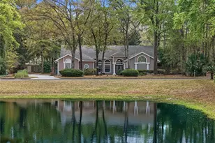 Located in the highly sought-after Huntington neighborhood, this 2,760 sq ft home sits on just under half an acre directly across from the community pond, offering a setting that combines space, privacy, and convenience in one of the area's most desirable communities. Inside, the home immediately opens up with soaring ceilings that carry through the main living areas and into the primary suite, creating a sense of volume that's hard to find. The layout is built around a large, open-concept kitchen and living space that truly functions as the heart of the home. The kitchen stands out with its size, layout, and functionality. Featuring extensive counter space, a large center island, breakfast bar seating, and abundant cabinetry, it is designed for both everyday use and entertaining. It opens directly to the main living area, allowing for easy flow and connection throughout the home. The living room is a standout space, anchored by a custom built-in wall with fireplace and shelving, and framed by a full wall of windows that bring in natural light and views of the pool and backyard. The ceiling height combined with the openness of the space makes it feel expansive without losing comfort, and the layout offers multiple options for furniture placement and gathering. The primary suite continues the theme of scale and separation, featuring its own fireplace, a custom feature wall, and a spacious bathroom with soaking tub, walk-in shower, and generous layout. It feels like a true retreat within the home. Step outside and the property really starts to separate itself. The screened-in pool, recently resurfaced, anchors the backyard and is complemented by a covered patio with a built-in wet bar, an extended paver patio, and a dedicated firepit area. Mature trees line the rear property line and create a high level of privacy. The property also offers practical advantages, including an extended driveway with ample parking, a large two-car garage with extended ceiling height, and a side yard with a double gate for hidden boat or trailer parking. Major updates have already been completed, including a new roof in 2018, pool heater in 2019, updated kitchen appliances with a newer dishwasher in 2022 and oven in 2026, pool resurfacing in 2024, and both the pool pump and one HVAC unit replaced in 2025. A well-rounded property that delivers on space, layout, and indoor-outdoor living in a neighborhood where homes consistently move quickly.