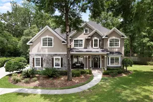 Welcome to this stunning pool home in India Station-one of the most picturesque neighborhoods in Haile Plantation! This beautiful home offers the perfect blend of elegance, comfort, and functionality! Featuring 5 bedrooms and 5 bathrooms on a serene, half-acre fenced lot, tucked away at the end of a peaceful cul-de-sac. Ideally located just steps from Hawkstone Country Club, the golf course, and miles of scenic walking and running trails, this home provides both luxury and lifestyle. Inside, soaring ceilings and oversized windows flood the home with natural light, while French doors blur the line between indoor and outdoor living. The chef-inspired kitchen features crisp white shaker cabinetry, a gas cooktop, and abundant space for meal prep and gathering. It flows effortlessly into the spacious family room, creating a seamless open-concept living experience. The formal dining room is perfect for entertaining, and the additional living room offers a flexible space for reading, conversation, or a cozy home office. Upstairs, retreat to the luxurious primary suite, a spacious haven that opens to a spa-like bathroom. Unwind in the soaking tub, or enjoy the oversized walk-in shower featuring a rainfall shower head for a resort-style experience. A flexible bonus room can serve as a fifth bedroom, media room, playroom, home office, or guest suite. Each of the upstairs bedrooms includes ensuite bathrooms, offering comfort and privacy for family or guests. Step outside to a resort-style backyard designed for year-round enjoyment-featuring an oversized, salt water pool, summer kitchen, fire pit, and expansive green space, perfect for play or quiet relaxation. The screened lanai invites effortless outdoor living in true Florida style. An oversized three-car garage provides ample space for vehicles, toys, or storage. This exceptional home is a rare gem in the community-beautifully designed, thoughtfully maintained, and ideally located. Don't miss your opportunity to experience this lifestyle-schedule your showing today!