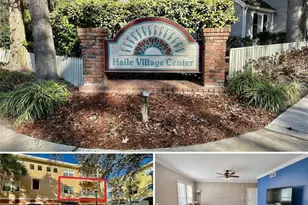 Under contract-accepting backup offers. Live in the heart of Haile Village Center! This beautifully updated condo features wood-style tile floors, crown molding, high ceilings, and a private balcony overlooking charming brick-lined streets. The kitchen offers stainless steel appliances, solid surface countertops, and plenty of storage. Enjoy access to the community pool and gym, as well as walkable proximity to dining, boutique shopping, and community events. Located just minutes from UF, Shands, and local shopping. All furniture and appliances shown in the listing photos are included, offering a partially furnished home.