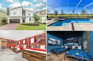 STUNNING GOLF COURSE VIEW - This fully furnished pool home overlooks a championship 18-hole golf course in the highly desirable, resort-style community of Champions Gate. Offering 8 bedrooms and 5 bathrooms, this spacious retreat is designed to host large families or operate as a premier short-term rental - comfortably accommodating up to 22 guests! The open-concept main floor features elegant tile flooring, a bright family room, dining area, and a gourmet kitchen complete with granite countertops, stainless steel appliances, and a large island. Sliding glass doors open to a covered lanai and a screened-in heated pool and spa, perfect for enjoying Florida's indoor/outdoor lifestyle. A primary suite and an additional guest bedroom are conveniently located downstairs. Upstairs, you'll find multiple guest bedrooms, including three themed rooms - Harry Potter, Star Wars, and Toy Story - along with a spacious loft and a massive bonus room converted into a large bedroom. The garage has been transformed into an inviting game room, adding even more entertainment options. Just a short walk to world-class community amenities such as multiple clubhouses, resort pools, lazy river, waterslides, tiki bar, theater, fitness center, volleyball and tennis courts, and more! HOA fees include lawn care, internet, cable, and daily valet trash service within this secure 24-hour guard-gated community. All located just minutes from Orlando's best shopping, dining, and top attractions. Don't miss the chance to own this spectacular home - schedule your showing today!