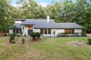 PRICE IMPROVEMENT! Beautiful 4BR/2.5BA Home on 1 Acre in NW Gainesville's Sought-After Spring Forest Community! Discover this 2,571 sq. ft. two-story home tucked off scenic Millhopper Road, offering peaceful, nature-filled living just minutes from Hunters Crossing shops, Publix, restaurants, San Felasco Preserve trails, and Devil's Millhopper State Park. Step inside to a bright foyer with a grand staircase, spacious formal living and dining rooms, and a large family room featuring a brick wood-burning fireplace and built-in cedar bookcases. The oversized kitchen offers abundant counter space, a breakfast nook overlooking the private backyard, and direct access to the screened porch - perfect for indoor-outdoor entertaining. A flexible office or guest suite with a half bath and an attached two-car garage provides excellent versatility. Upstairs, you'll find four comfortable bedrooms, including a high-ceiling primary suite filled with natural light. Recent updates include fresh exterior paint (2023) and a new roof (2022) for added peace of mind. Set on a rare 1-acre wooded lot, this unique home - with great bones and a solid foundation - offers convenience, privacy, space, and tranquility, with views of deer and wildlife right from your windows, yet minutes away from all your daily needs. If this is the lifestyle you've been seeking, welcome home. Enjoy the charm, quiet, and convenience of Spring Forest - one of NW most desirable and rarely available neighborhoods but with low HOA!
