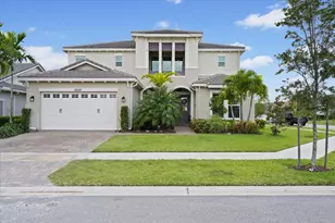Stunning 2019-built home in the highly sought-after Hammocks at Westlake, featuring the rare KESTREL GRAND model by Minto. This move-in-ready residence offers 5 bedrooms, 4.5 bathrooms, and 4,110 sq. ft. of thoughtfully designed living space. The impressive two-story layout includes a dramatic spiral staircase, expansive upstairs balcony with tranquil lake views, and an open floor plan filled with natural light. Extensively upgraded with hurricane-impact windows and doors, porcelain tile flooring, and soft white-and-gray designer finishes throughout. The oversized gourmet kitchen features a large entertaining island, premium finishes, and abundant cabinetry-ideal for everyday living and gatherings. Enjoy a perfect blend of modern comfort and approachable luxury, with access to the Westlake Clubhouse and Westlake Adventure Park, offering resort-style amenities for all ages. Ideally located in one of Westlake's most desirable communitiesthis home is a must-see.