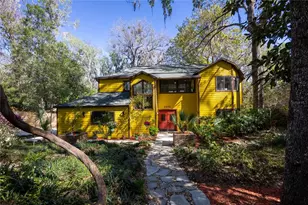 Nature lovers' lakefront dream home in peaceful and quiet NW Gainesville's Misty Hollow. This 3 bedroom, 2.5 bathroom plus loft contemporary home was built in 1986. Well maintained with soaring 25 foot ceilings, balconies, deck and 2-story screened porch with outstanding views of the gardens, fruit trees and lake. Misty Hollow is just 3 miles to the University of Florida, 1.5 miles to Santa Fe College, and 1 mile to Millhopper Publix, Fresh Market, Dorns, Uppercrust Bakery and nearby shops and restaurants. The front yard has well established native plants, soaring oaks and mature fruit trees. The winding flagstone path leads to the double front door. The entry leads to a bright and open floor plan with new interior paint and updated ceramic tile flooring. Straight ahead is the Great Room with wood burning fireplace and two sets of double-sliding glass doors with commanding views of the lake. This large space has vaulted 25 foot ceilings, updated marble floors with radiant heating and upgraded ceiling fans and lighting. To the right is the dramatic dining room with built-ins, custom paint and lighting. The views of the lake will wow your dinner guests. Off the dining room is the kitchen with a new stainless steel gas range, vented hood, pantry, breakfast bar, stainless steel appliances and separate space for a breakfast nook. Around the corner from the kitchen is a half bathroom perfect for guests when entertaining. Stepping across the foyer is the laundry room with washer and dryer and lots of shelving for additional storage. To the left of the laundry room is the access to the two car, side entry garage. The garage has shelving for storage and a workbench. Upstairs, newly carpeted just two years ago, you enter a loft area with a ton of windows and light. This space is perfect for an additional office space, or a media area with large, curved-screen, 3-D, 4K television that conveys with the sale of the home. The loft splits the guest bedrooms from the Primary Suite. The very large Primary Suite has a walk-in closet, balcony overlooking the lake, and a balcony off the en-suite bathroom. The updated bathroom has double vanities, custom wall-to-wall medicine cabinet/storage area, beautiful quartzite tile, and a large walk-in shower/steam room with European-style toilet/shower area. This truly contemporary wet room has two jetted shower panels and radiant floor heating. Back to the other side of the loft are two guest bedrooms. The first has amazing views of the rear backyard and lake. The second has beautiful views of the front yard and gardens. They share a guest bathroom with tub/shower, updated lighting and mirror. There are two HVAC systems. One was updated in 2025. New gas water heater also 2025. The home sits on .42 acres and abuts a conservation area. Off the rear of the home is a large screened porch with built-in planters, deck, and seating. Just off the porch is a deck with meandering paths that lead to a fenced area and that gently slope down to the water. Perfect for kayaking, aerated Lake Moon, of roughly 4 acres, has lots of wildlife, including fish, birds and deer. The garden has over 30 fruit trees, including multiple types of banana, citrus, pawpaw, plum, cherry, pear and apple. No HOA. Survey available. Zoned for A rated schools: Meadowbrook Elementary and Fort Clark Middle Schools. Walking distance to Buchholz High School. Fun contemporary home in a truly gorgeous setting.