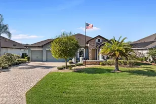 This meticulously maintained Juliette floor plan offers refined Florida living with a private courtyard entry and tranquil lakefront setting in the sought-after gated community of Plantation Bay Golf & Country Club. Owned by the original, part-time owner, this 3-bedroom plus flex room home is filled with natural light and thoughtfully upgraded throughout. The welcoming entry showcases high ceilings and crown molding, and flows seamlessly into the main living area where expansive lake views take center stage. The family room features tile plank flooring, a custom built-in entertainment center, surround sound, electric blinds, and triple sliders opening to the extended lanai. The light and bright kitchen is appointed with 42'' white all-wood cabinetry with soft-close dovetail drawers, tile backsplash, built-in stainless steel GE appliances, a separate cooktop range, breakfast bar/island, walk-in pantry, and elegant crown molding. The adjoining dining room enjoys panoramic (CONTINUED) lake views, custom drapery, crown molding, and continuous tile plank flooring. The primary suite offers peaceful lake and fountain views, crown molding, custom window treatments, and a Closets by Design walk-in closet with custom built-ins. The spa-inspired bath features dual sinks on quartz vanity, a large walk-in tile shower, Kohler soaking tub, and separate water closet. Bedroom two is located at the front of the home and features plantation shutters, abundant natural light, and a Minka Aire ceiling fan. Bedroom three also includes a Minka Aire fan. Bathroom two is finished with a white quartz vanity and tile walk-in shower. A versatile flex room with pocket door, plantation shutters, surround sound, and tile plank flooring is currently used as an office. Additional highlights include a laundry room with sink, massive three-car garage with epoxy floors, whole-house water filtration system, hybrid water heater, Ecobee smart thermostat, interior and exterior camera security system, and tile plank flooring throughout the home except bedrooms. Outdoor living shines on the extended travertine-paver lanai, pre-plumbed for an outdoor kitchen, offering breathtaking grand lake and fountain views, refreshing breezes, and a backyard large enough for a pool. The property is enhanced by paver driveway and walkways, a personal flagpole, upgraded rock landscaped beds, additional lush tropical plantings, and an irrigation system. Residents of Plantation Bay enjoy an optional membership lifestyle featuring 45 holes of championship golf course, clubhouse dining with new 30 million dollar Founders Clubhouse, resort-style pools, 9 pickleball courts and 10 tennis courts, a fitness and spa center, walking trails, and year-round social events, all within a secure, guard-gated community ideally located near beaches, shopping, dining, and I-95. Buyers of this home to receive a substantial discount on initiation fee at the club. Ask listing agent for details. Details for effortless living and entertaining, this exceptional lakefront home delivers comfort, quality, and resort style living at its finest.