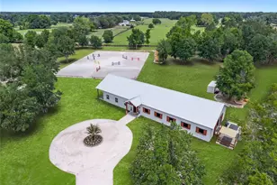 Experience the Ultimate Equestrian Estate: Luxury, Privacy, and Convenience Await! Escape to unparalleled privacy and luxury with this stunning 2024 custom-built barndominium, perfectly nestled on a serene 10-acre lot at the end of a quiet cul-de-sac in a desirable deeded community. Ideally located between 326 and 464B, this exceptional property offers the best of both worlds: secluded tranquility and convenient access to equestrian hotspots, just 4.5 miles from HITS Ocala and 9 miles from the renowned World Equestrian Center. This meticulously designed property is a dream come true for equestrian enthusiasts. Imagine a state-of-the-art 8-stall concrete barn, complete with an AC-cooled tack room and full bathroom facilities, including a washer and dryer for ultimate convenience. The spacious 1,600-square-foot owners lounge boast soaring 12' ceilings and feature two generously sized bedrooms and two luxurious bathrooms. The gourmet kitchen is a chef's delight, equipped with high-end appliances, elegant quartz countertops, a large central island, and a convenient pot filler. Every detail has been carefully considered to ensure maximum comfort and energy efficiency. Spray foam insulation throughout the ceiling provides optimal climate control for both the living space and the horse stalls, ensuring comfort year-round. Beyond the exquisite living space, this property is equipped for serious equestrian pursuits. A fully irrigated, automated 130'x200' sand arena with a top-quality rock base and premium silica sand provides the perfect surface for training. Six brand-new paddocks (shaded by tree lined canopies) and direct access to a bridle path create exceptional conditions for riding and enjoying your horses. Modern conveniences are seamlessly integrated, including optic fiber connectivity for high-speed internet. Plus, two RV hookups provide flexibility for guests or additional living space. Secluded by surrounding horse properties and accessed via a paved street, this estate offers complete privacy and effortless accessibility. Don't miss this incredible opportunity to own a truly unique and exceptional equestrian estate.