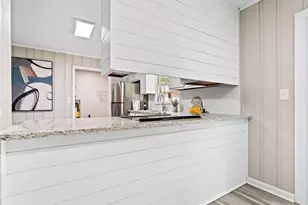 - Kitchen: Breakfast Bar, White Cabinets, Stone Counters