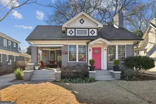 Porch-sitting charm included. This beautifully preserved 1930 brick bungalow sits in the heart of Kirkwood and blends classic Craftsman details and thoughtful period updates throughout. Painted a timeless medium gray, the exterior features decorative roofline sconces and a welcoming side porch entry-perfect for sipping tea and chatting with neighbors. The warmth and charm are immediately evident as you enter the home. A light-filled living room spanning the full width of the home and centered around a white brick fireplace flanked by built-ins and charming windows that set a timeless tone. The living room connects seamlessly to the dining area and kitchen through elegant French glass doors. Hardwood floors, crown molding, wide trim, and a statement chandelier anchor the dining space, while a raised breakfast bar opens to the kitchen. The kitchen offers abundant stained cabinetry, granite countertops, stainless steel appliances, a large pantry, and hexagon tile flooring. The main level boasts 10 ft ceilings and includes two secondary bedrooms-one with built-in shelving and a TV nook, the other generously sized with a walk-in closet-along with a beautifully updated hall bath featuring classic tile flooring and crisp white subway tile in the tub/shower. The oversized primary suite is a true retreat with vaulted ceilings, a walk-in closet, and French doors opening to the back patio. The primary bath features double vanities, a linen closet, tile floors, and an oversized subway-tiled shower with seating. Upstairs offers two additional bedrooms, and a full bath-ideal for guests, work-from-home space, or flexible living. Outside, enjoy a private, fenced backyard with mature landscaping and a cozy patio accessible from both the kitchen and primary suite. Location is everything and just 4 houses away from Bessie Branham Park, and a short walk to the library and all the restaurants, shops and gathering spots downtown Kirkwood has to offer. Classic, inviting, and full of character-this bungalow feels like home the moment you arrive.