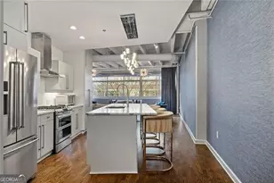 Located in the heart of Midtown, this expansive and light-filled two-bedroom, two-bath condo/loft offers sophisticated city living with refined finishes throughout. Wide-plank hardwood floors flow seamlessly through the residence, complemented by a beautifully renovated kitchen featuring quartz countertops, updated stainless steel appliances, gas cooking and custom cabinetry with exceptional storage. Designer custom wallpaper and statement Jonathan Adler lighting create a curated, high-end aesthetic, while electric shades and custom drapery provide both style and privacy. The thoughtfully designed roommate-style split floor plan includes a separate laundry room, an expansive living area and unobstructed, sky-filled views through commercial-grade, dual-pane glass that opens for fresh air. Additional highlights include a private storage unit conveniently located on the same floor and two assigned, gated and covered parking spaces. 805 Peachtree Lofts offers a full suite of luxury amenities, including a 24-hour concierge, a large, updated fitness center, a clubroom and a resort-style saltwater pool with cabanas and a fire pit. Residents also enjoy gated parking, rare guest suites, convenient guest parking, bike storage, Google Fiber and EV charging stations. Unbeatable Midtown location with walkability to over 90 restaurants, Piedmont Park, the Atlanta BeltLine, Fox Theatre, High Museum, MARTA, Georgia Tech, Colony Square, Trader Joe's and more-offering the perfect blend of urban energy and elevated living.