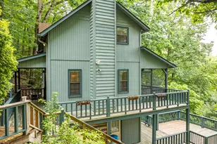 Home Priced To Sell!!! You will not find another home for sale with this view for under $300k! Perched hillside to maximize the long-range mountain views, this charming Owltown retreat offers peace, privacy, and plenty of outdoor living space just 16 minutes south of downtown Blairsville. Thoughtfully designed to embrace its surroundings, the home features a spacious screened-in deck with ceiling fans that spans the full width of the house-perfect for relaxing and enjoying the breeze. A lower-level covered deck and an additional open-air deck provide ideal spots for grilling and entertaining, all buffered by trees for a tranquil, tucked-away feel. Inside, you'll find a warm and inviting open-concept layout with wood-paneled walls and ceilings, exposed beams, and hardwood floors throughout the main living area. The gas-powered stone fireplace anchors the cozy living room, which opens to the screened-in deck through sliding glass doors. The kitchen has plenty of space for a dining table and flows easily into the main living areas. A combined half bath and laundry room is also conveniently located on the main floor. Upstairs are two bedrooms with hardwood floors and a full bathroom with vinyl flooring. Unlike the rustic main level, the upper level features drywall walls and ceilings for a more traditional finish. The walk-out lower level has its own entrance, a full bath, mini-split HVAC, and a flexible open room that could serve as a third bedroom, guest suite, or bonus space-making it a great option for short-term rental income or private guest accommodations. The lower level is carpeted, with vinyl flooring in the bathroom. Ceiling fans on all three levels and plenty of outdoor access make this home comfortable and versatile year-round. Don't miss this unique opportunity to own a piece of the North Georgia mountains with views you'll never want to leave! Home is being sold AS-IS with right to inspect. Seller providing a one-year home warranty.