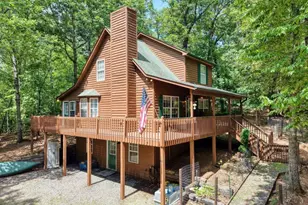 Here is that Cabin in the Woods that you have been dreaming of! Almost 1.5 acres of level private property surround this well cared for cabin style home. Open main level great room that combines living , dining and kitchen with an added bonus sunroom. Upstairs you will find a nice spacious loft area with a large master suite and bath. Lower level is finished with a half bath, bedroom and laundry room and storage mechanical room. Small workshop area is located on the lower level and there is plenty of storage in this home with large bedroom closets and nice storage room in the walkout basement level. Outside there is plenty of parking, even an RV hook-up with 50 am service and RV pad. Nice 12x12 almost brand new shed for storage or make this a nice workshop. The exterior has been painted recently and you will love the covered decks and porches to enjoy the piece and quiet of this home. There are pine floors that make this cabin home nice and cozy and best of all it comes completely furnished so you just have to bring yourself to start enjoying the wonderful North GA Mountains. There is lots of level land and it is super quiet so if you are looking for the perfect mountain vacation cabin or full time home don't miss this one. There is a fenced dog area that is in place to keep your fur baby safe. Yes you can have it all in this wonderful cabin in the woods!