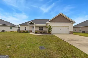 Welcome to this beautiful home in the Cottages at Blue Ridge subdivision in Bonaire, GA. Offering 1,916 square feet of thoughtfully designed living space, this home features an open split bedroom floor plan, high ceilings, and abundant natural light throughout. The spacious kitchen is a chef's dream, complete with granite counter tops, stainless steel appliances, and a large island that is perfect for entertaining. The living room is warm and inviting with coffered ceiling which help absorb sound and reduce noise levels and echoes in a room. There is an electric fireplace, plus newer luxury vinyl plank flooring throughout the main living areas. The primary suite provides a relaxing retreat with a barn door leading to a luxurious en suite bath and a huge walk in closet. Additional bedrooms are generously sized and offer flexibility for any lifestyle, with one ideal for a home office. A convenient mud bench is located at the garage entry. Step outside to enjoy the covered patio and fenced backyard, perfect for taking in Georgia's beautiful seasons. Conveniently located near Robins Air Force Base, top rated schools, shopping, and dining, this home is a must see. Don't miss your opportunity to make it yours.