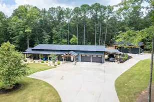 Builder's personal custom built Barndominium on 22+ acres in highly desirable Buckhead, Morgan County. Very private with mature hardwoods. This beautiful home features open floor plan with everything on one level. 2 beds 2 full baths with another finished bonus room that could be used for bonus room/ office or another bedroom. Open kitchen with granite counter tops, stainless appliances that opens up to a screened in porch overlooking wooded private back yard. Great room with corner stone fireplace. Cozy rocking chair front porch. LVP floors throughout home. Detached large garage that would easily fit RV or boats. Very convenient to lake and marina. Property was originally two separate parcels so you could build another residence on property.