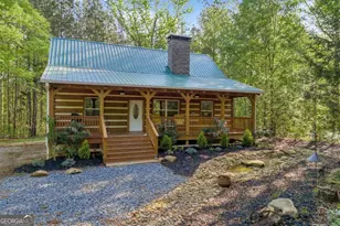 Welcome to your peaceful getaway! Nestled on 5.97 acres of serene, wooded land, this beautiful log cabin offers privacy, charm, and rustic but new elegance. Completed in 2021 this home features tongue and groove ceilings, luxury vinyl flooring throughout, recessed lighting, open shelving and much more. Sink into the coziness from the warmth of the wood-burning stacked stone fireplace that runs floor to ceiling in the den or enjoy the warmth of the gas log fireplace in the master bedroom-perfect for those crisp mornings and cool evenings. The heart of the home features a spacious open-concept kitchen and living area, blending rustic charm with functional design. Instead of traditional cabinetry, custom-built open shelving adds character and keeps the space light and airy-perfect for showcasing your favorite kitchenware or collectibles. This unique kitchen is equipped with both an oven/range combo and a classic wood-burning stove, offering versatility for the home chef and an extra touch of old-world charm. The seamless flow into the living area creates a welcoming space ideal for entertaining. The split-bedroom floor plan provides comfort and privacy, with each bedroom featuring its own private bathroom. This primary suite offers comfort, charm, privacy and features a cozy gas log fireplace and direct access to a jetted soaking tub built for two, perfect for relaxing after a long day. The secondary bedroom has direct access to a private bath with a separate shower. A charming loft overlooks the open-concept kitchen and living room below, creating a sense of space and connection while offering a cozy retreat of its own. Whether used as a reading nook, home office, or extra guest space, the loft provides elevated views of the warm wood interiors and stone fireplace, making it both functional and inviting. Enjoy your morning coffee on the covered front porch or relax on the spacious back deck surrounded by nature. A tranquil water feature in the front yard adds to the peaceful ambiance of this special property. This log cabin is a true gem tucked away but only 11 miles from Tanger Outlets in Commerce or a drive less than 30 minutes to Athens. Don't miss the chance to own this one-of-a-kind log cabin retreat, where every detail is crafted for comfort and connection to nature. Schedule your private showing today and experience the peace and privacy this special property offers.