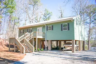 Private lakefront retreat on J. Strom Thurmond Lake, also known as Clarks Hill Lake. This 3 bedroom home is tucked away on two wooded lots at the end of a long private driveway, offering exceptional privacy and versatility. With approximately 1,250 square feet of well designed living space, the property is ideal as a full time residence, weekend escape, or vacation rental. The fully renovated interior features a bright, open concept floor plan with soaring 10 foot ceilings and an easy flow for everyday living and entertaining. Modern updates include porcelain tile and hardwood flooring, energy efficient windows, and a tankless water heater for comfort and efficiency. Step outside to the beautiful back deck overlooking serene lake views, the perfect place to relax, sip your morning coffee, or unwind at the end of the day while taking in the peaceful surroundings. A private driveway extends to the U.S. Army Corps of Engineers line, crossing a new heavy duty golf cart bridge and providing direct access to a private dock area ideal for boating, fishing, kayaking, and enjoying the lake lifestyle. Located near wildlife management areas, the property offers outstanding recreational access and a peaceful natural setting. Below the home, an additional approximately 1,250 square feet is stubbed for plumbing, offering excellent potential for future expansion, guest accommodations, or storage. Don't miss this rare opportunity to own a private lakefront home on one of the Southeast's most sought after lakes. Note: All improvements and dock options are subject to Corps approval; however, a slip dock with a longer gangway may be possible provided the required 50-foot setback is maintained.