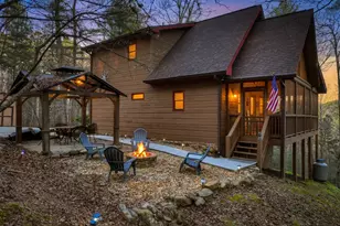 Turn-key and beautifully updated, this 3-bedroom, 3.5-bath cabin comes fully furnished with brand-new furnishings and offers the relaxing sounds of Mountaintown Creek nearby, creating the perfect mountain getaway or full-time retreat. Meticulously maintained and warm throughout, the property welcomes you with a covered fire pit pavilion ideal for gathering, along with a large covered and screened wraparound porch perfect for morning coffee, outdoor dining, or simply unwinding while enjoying the peaceful wooded setting. Inside, the open living, kitchen, and dining area features a stunning pine interior, rock gas log fireplace, vaulted ceilings, recessed lighting, and abundant windows that fill the home with natural light. The kitchen offers wood cabinetry, newer appliances, and an electric range. The main level includes a guest bath with a barn wood accent wall and a spacious primary suite with a walk-in closet, private porch access, and an ensuite bath featuring a double vanity, soaking tub, separate shower, and pine ceiling. Upstairs, a second oversized primary suite also provides a full ensuite bath with double vanity and tub/shower combo. The finished terrace level adds a large living room, game room, excellent storage, an additional bedroom with his-and-her closets, and a full bath with shower and laundry area. Step outside to enjoy the party deck with hot tub, grilling area, and fire pit space, plus a nice yard with a new split rail fence and a charming child's treehouse with electricity. Recent updates include a new roof, new HVAC, fresh exterior stain, newer appliances, and all-new furnishings, making this home truly move-in ready. Conveniently located close to everything Ellijay has to offer, including hiking trails, vineyards, and apple houses, this pristine cabin delivers comfort, charm, and an incredible mountain lifestyle.