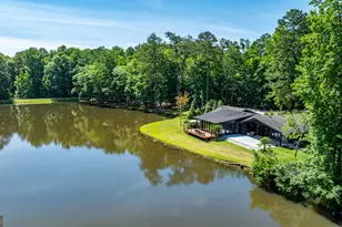 EXQUISITE MID-CENTURY MODERN LAKEFRONT ESTATE. Welcome to 129 Solitude, an unparalleled sanctuary of luxury and tranquility, a Mid-Century Modern lakefront estate meticulously crafted to offer complete privacy and serenity on a sprawling 17.7-acre paradise. The main house, boasting four spacious bedrooms and three full bathrooms, is an epitome of sophisticated living. Each detail has been carefully curated to create a harmonious blend of modernity and timeless elegance. Your journey begins through a private gated access, leading to a newly paved cement driveway that meanders gracefully through verdant pastures and alongside the tranquil lake, culminating in a breathtaking side courtyard. This inviting courtyard serves as a serene entry point, accessible from each of the guest bedrooms, providing a perfect blend of indoor and outdoor living. Step into the expansive A-frame living room, where wall-to-wall windows frame stunning panoramic views of the peaceful lake. The open-plan living, kitchen, and dining space is an entertainer's dream, featuring a state-of-the-art kitchen with a seated island, honed quartz counters, top-of-the-line gas range, a feature arched stove hood, and custom cabinets. An adjacent sunroom extends the living area, offering further dramatic lake views and opening onto a spacious deck for seamless indoor-outdoor living. The extravagant owner's suite is a private retreat, accentuated by arched doorways and a custom headboard. Luxurious touches abound, from the arched barn doors leading to a sumptuous bathroom with a standing soaking tub encased in glass overlooking a private courtyard, to finished cement floors and custom brushed cement counters. The glass surround walk-in shower is thoughtfully designed with ample built-in storage. A large walk-in closet with custom shelving and a private courtyard space featuring a striking rock retaining wall complete this sanctuary. Three guest bedrooms, situated opposite the owner's suite, offer direct access to the shared courtyard space, ensuring that every guest enjoys a slice of the estate's serene beauty. The separate renovated guest house is a marvel of design and functionality, featuring a vaulted living space, separate bedroom, full bathroom, and a versatile flex space ideal for a home gym, studio, or office. This estate is a showcase of luxury, with dark wide plank floors, a sophisticated built-in Sonos sound system throughout, and an arch theme elegantly woven through light fixtures and doorways. Beyond the main and guest houses, the property includes two additional buildable parcels, offering endless possibilities for expansion. Indulge in a lifestyle where every detail exudes high-end craftsmanship and luxurious comfort. This Mid-Century Modern lakefront estate is more than a home; it's a masterpiece of living art, awaiting your presence. Conveniently located close to Fayetteville, Peachtree City, Piedmont Fayette, Trilith, Hartsfield Atlanta Airport, the new US Soccer Federation HQ and all Fayette County has to offer.