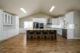 - Kitchen: Breakfast Bar, White Cabinets, Eat-in Kitchen, Kitchen Island, Pantry, Solid Surface Counters, Stone Counters, View to Family Room