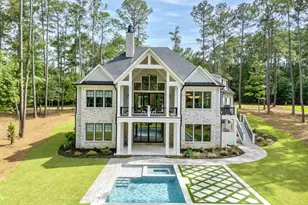 MODERN 2025 CUSTOM GOLF RESIDENCE AT REYNOLDS LAKE OCONEE - MODERN HOME WITH POOL, WINE CELLAR, FLEX ROOM and all JUST STEPS TO RITZ-CARLTON, LAKE CLUB AND MARINA. A true elevated lifestyle positioned on the 11th hole at the Oconee course. Step into this light-filled golf estate with an open concept graced with white oak flooring, soaring vaulted ceilings, Restoration Hardware designed chandeliers, custom oak cabinets, quartzite counters, masonry fireplace, wall-to-wall sliding doors and modern finishes. Lending an aura of sophistication and opulence, this residence is complete with a modern glass wine cellar, flex space for a simulator room/gym and a heated pool with hot tub and sundeck overlooking the sweeping golf vistas. This enviable golf residence is close to all the amenities that Reynolds offers and only steps to the lake, Lake Club pool, tennis courts, fitness center, marina, Kathy's cafe, docks, The Ritz-Carlton and hiking trails. Seller makes Membership available.